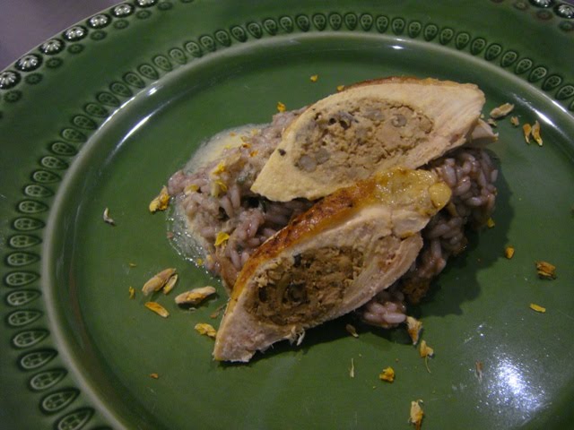 Aqui, já mais apelativo ao olhar (este não provei), outro empratamento com o aproveitamento da restante galinha.